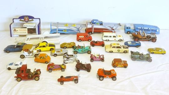 A quantity of model vehicles to include Corgi 'Car Transporter', (boxed), Oxford Diecast 'Daily Telegraph', Corgi Toys 'Whizzwheels', Matchbox 'Mercedes Benz  Ambulance'