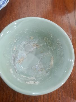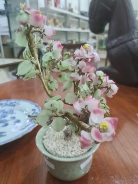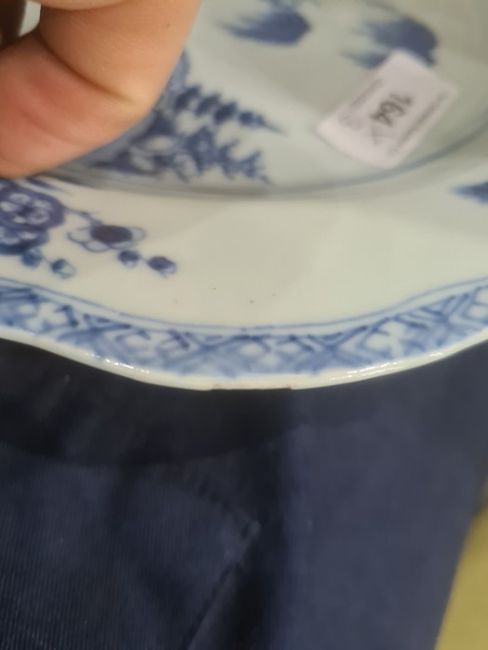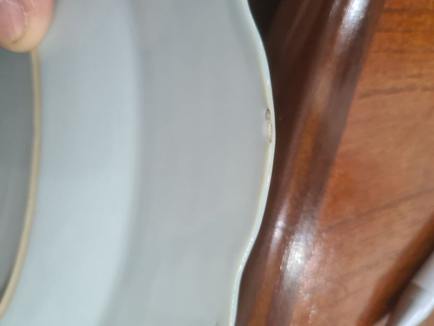 There are a few chips to both plates around the edges. The wirework tree has come lose from the pot. See attached images.