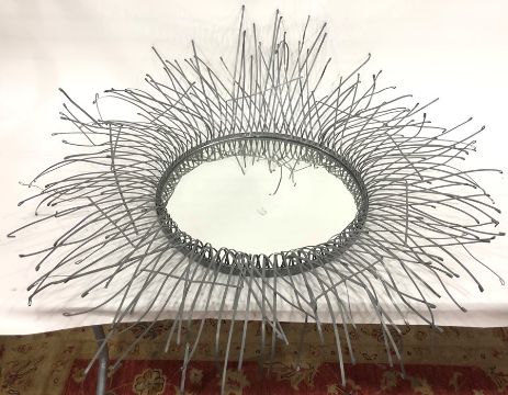 Circular modern sunburst-style mirror with metal spray surround, 100cm diameter approx