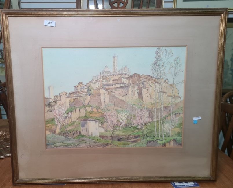 Freda Marston (1895-1949)WatercolourContinental hillside town with abbey, signed lower left, 34cm x 47cm