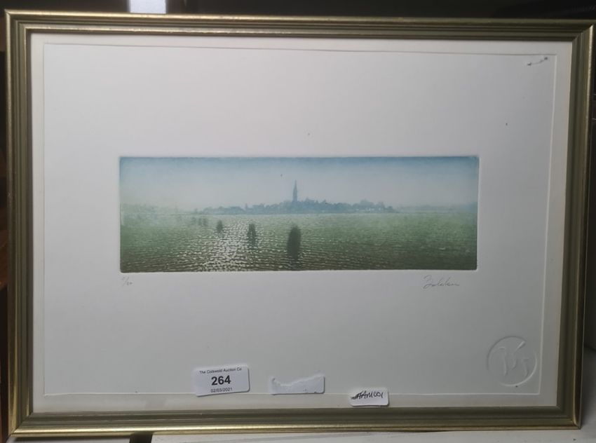 20th century continental schoolAquatintView of Venice from the lagoon, indistinctly signed in pencil and numbered 2/30, with blindstamp, 7.5cm x 23cm