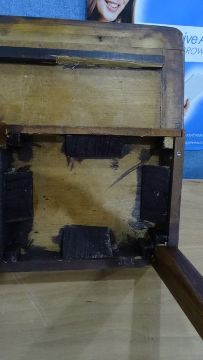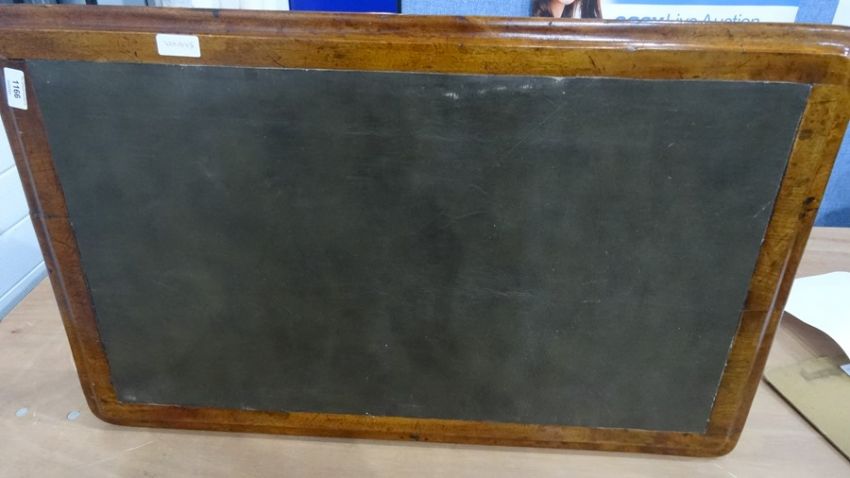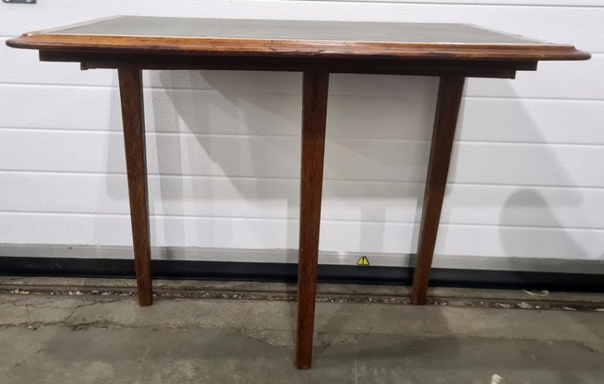 Unusual mahogany and leather-topped side table on three legs, 76cm x 63cmCondition Reportappears to have been modified from another table, some wear and damage to the top
