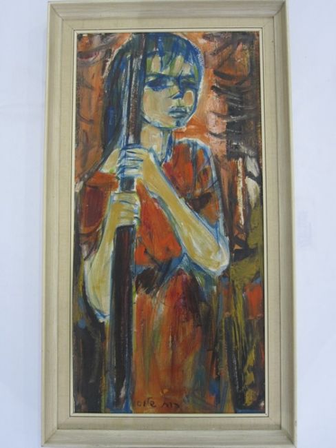 20th century schoolOil on canvasStudy of a young girl holding a stick, signed indistinctly Oite (?), 68.5 x 33.5cm)