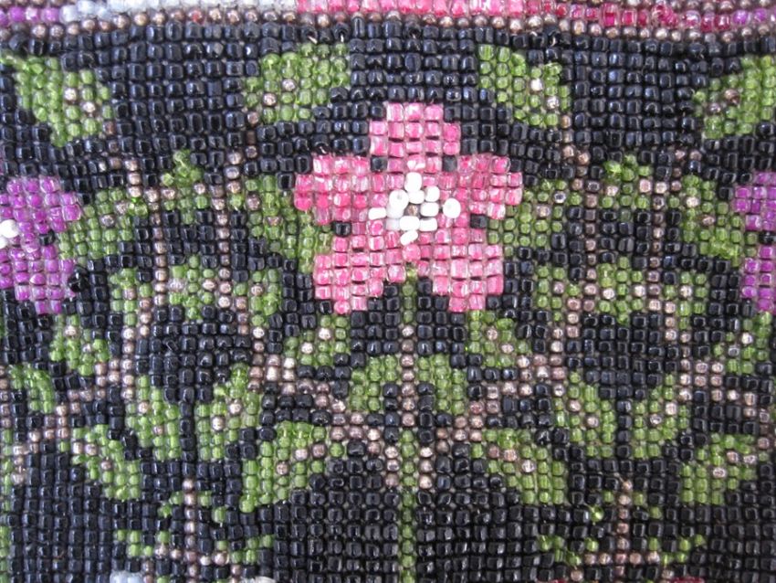 Victorian beaded reticule with drawstring and a brocade vintage evening bag with fixed frame (some decoration missing on the frame) (2)