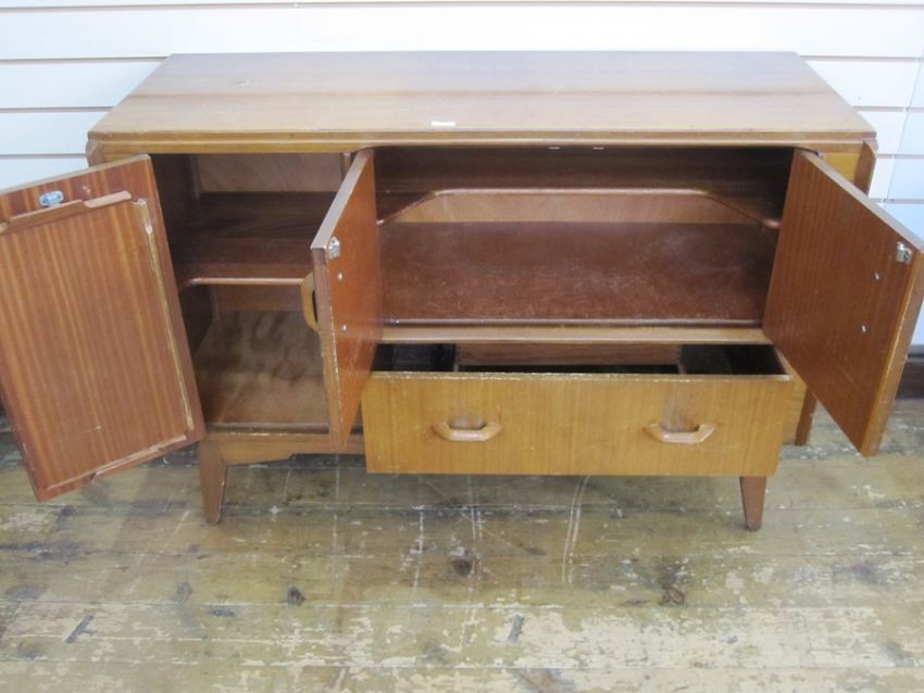 E Gomme Brandon range, G-plan sideboard, three cupboards and drawer below on tapering supports, 121cm wide