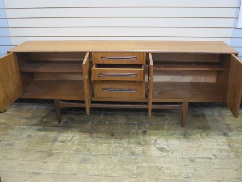 G-Plan Fresco dining suite to include sideboard (211cm wide), dining table (160cm unextended) and a set of six dining chairs
