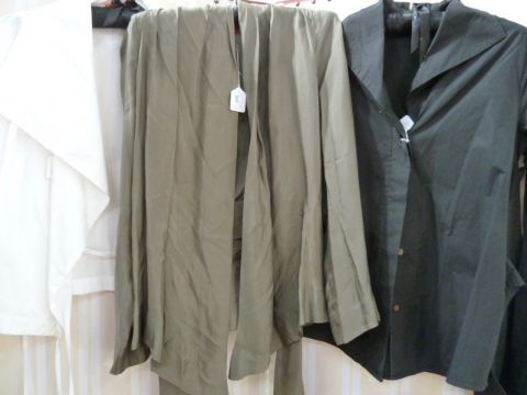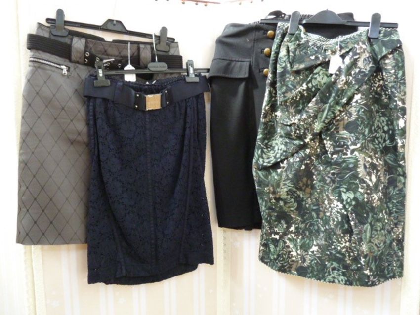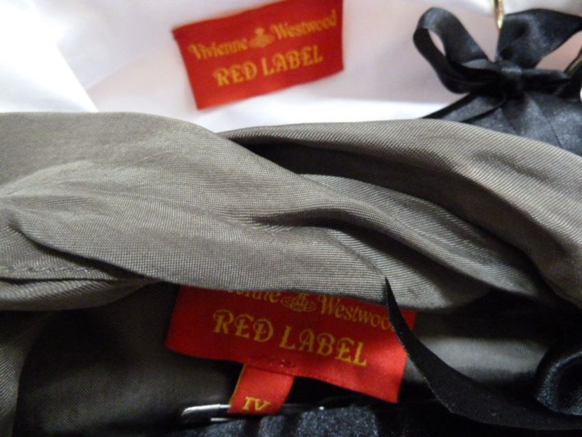 Vivienne Westwood Red Label taupe-coloured silk top with tie waist, a Vivienne Westwood Red Label white cotton shirt with spaghetti strap ties and deep wide reveres, a Vivienne Westwood Red Label black cotton shirt with half belt back detail, brown buttons and assorted skirts by Hightech, Mark Jacob, Diane Von Furstenberg and Sport Max (7)  Condition ReportVW taupe top: size IVVW white shirt: size IVVW black shirt: size IVHigh skirt: size 14MJ skirt: size 8DVF skirt: size 10Sportmax skirt: size 10