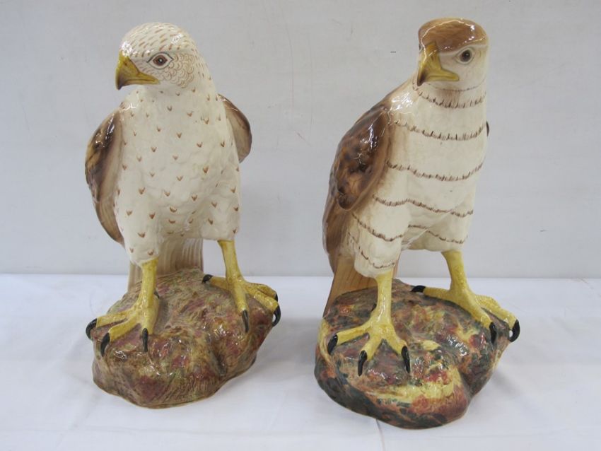 Marlborough ware model German shepherd, another larger German shepherd pottery model by Beswick, Dalmatian pottery model, two other dog models and pair of pottery eagles (7)