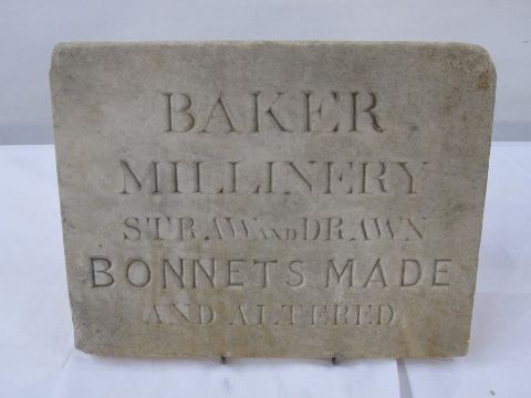 Stone advertising plaque 'Baker Millinery Straw and Drawn Bonnets Made and Altered', 25.5cm x 33cm Condition Reportweight -3 - 5lb's perhaps?