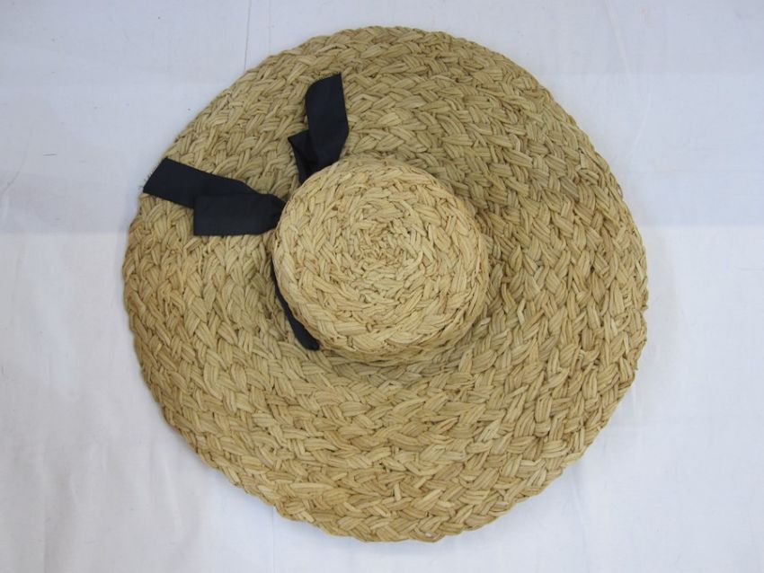 Black chiffon petticoat with net ruffles on the inside, a blue satin 1930's shift, a Cambridge University tie, a white cotton pinafore, an ermine tippet, two mink tippets and a wide brimmed  straw hat marked 'A Cook Hat, made in S.Rhodesia 913' with black ribbon ties