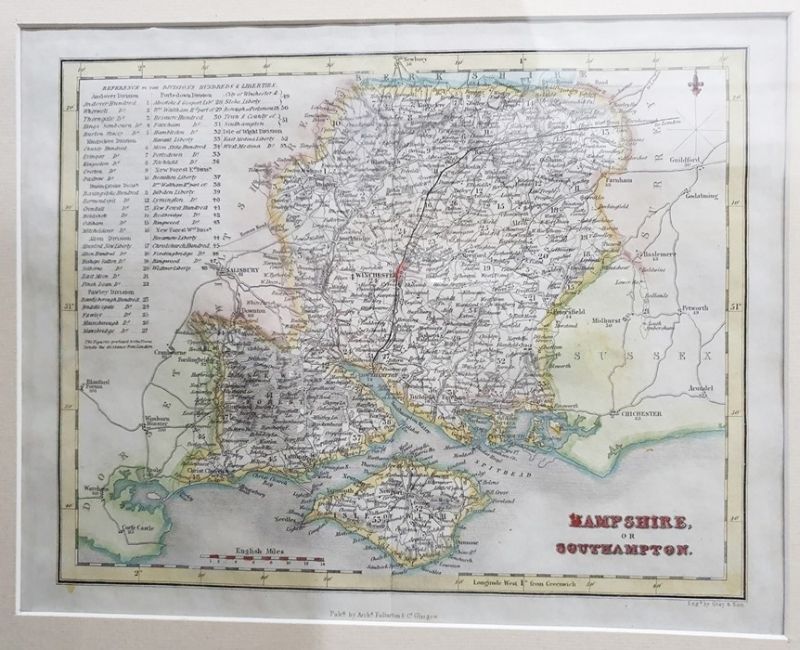 After Robert MordenHand coloured engravingHampshiretogether with One further modern map of Hampshire (2)