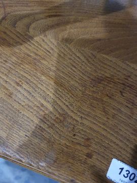 Ercol elm sideboard, the rectangular top above three cupboard doors, two drawers under, to castors, 129cm x 76cmCondition ReportSurface scratches, scuff & knocks to the wood. Some light fading, discoloration staining.  One drawer handle has a chip and crack, another has a crack.  General wear and tear commensurate with age and use, see photos.