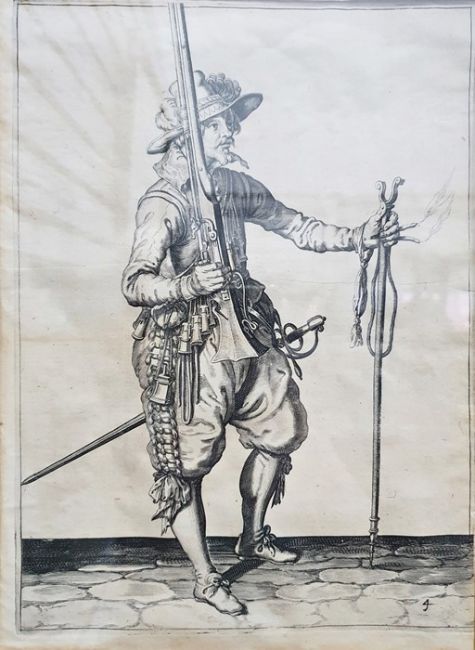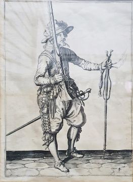 After Jacob de Gheyn (1565-1629)Copperplate engraving"The Exercise of Armes for Calivres, Muskettes and Pikes",Weinreb and DouwmaLtd, label verso, 26 x 18cm