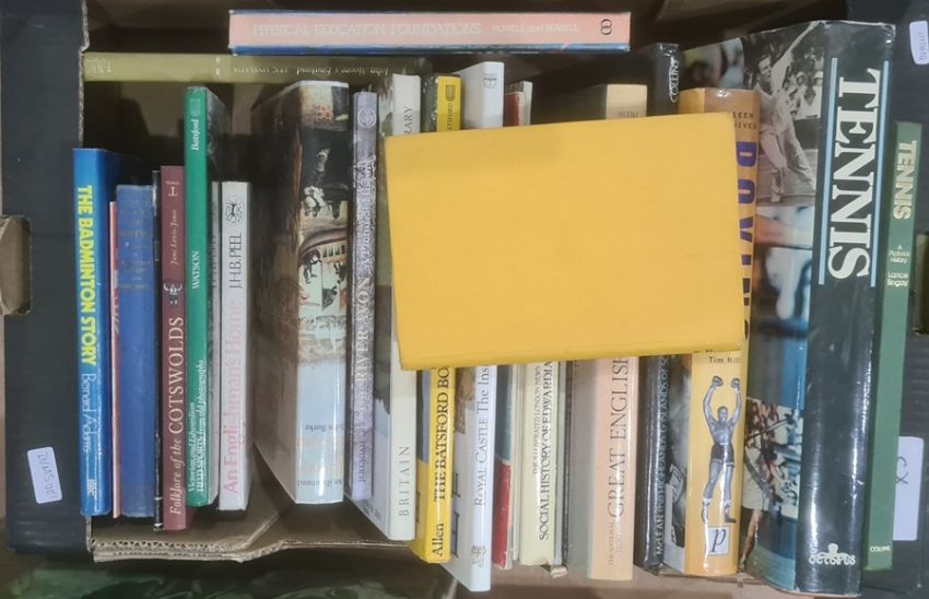 Assorted volumes , various subjects, philosophy, education. rugby, boxing, tennis,  ( 3 boxes)