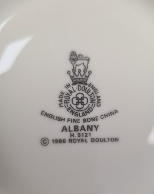 Extensive service of Royal Doulton 'Albany' pattern dinner and tea ware, originally for eight persons and to include five variously sized oval meat plates, dinner, side, tea and dessert plates, consomme cups and saucers, teacups, coffee cups, three lidded tureens, coffee pot, teapot, etc Condition ReportApprox.93 pieces.  Between 6 & 8 place settings.  All good condition, appears little used.