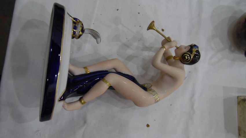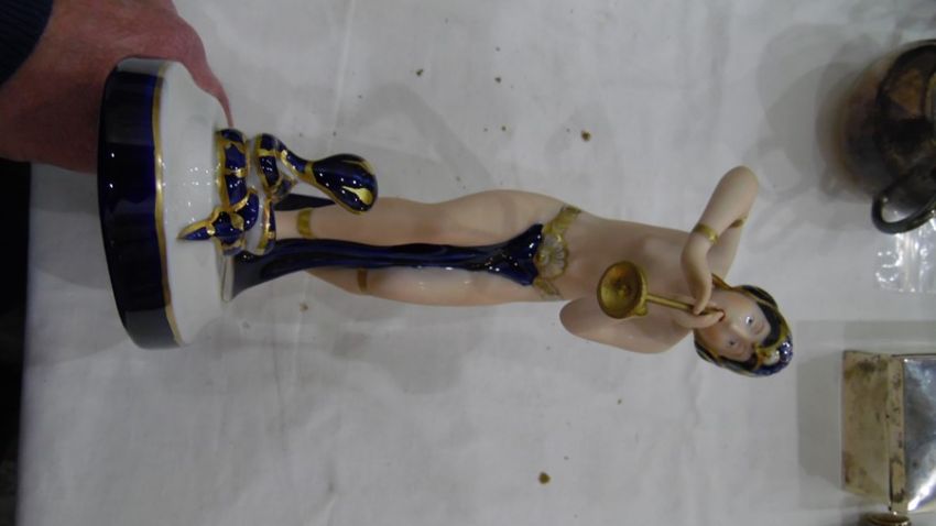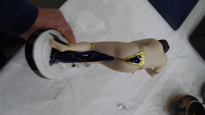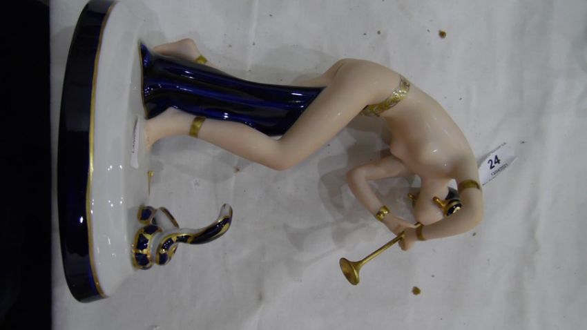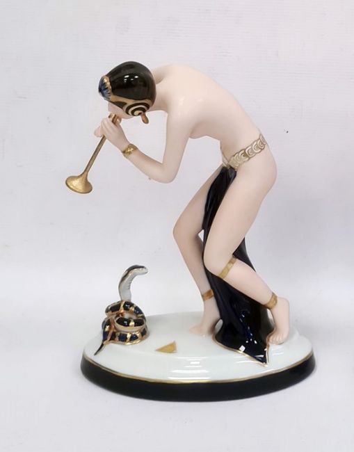 Royal Dux tinted bisque and glazed porcelain figure of a semi-nude snake charmer, on oval base, 23.5cm high Condition ReportNo obvious visible damage, see photos. Made approximately 1990's