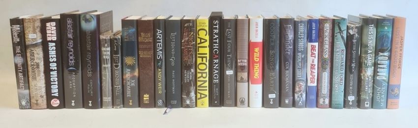 Science FictionPadgett, Lewis " A Gnome there Was" Simon and Schuster 1950 New York, red cloth, corners bumped, d-j, not price clipped, Hoffman, Paul " The Four Things " Michael Joseph, signed on the title page by the author, and other authors to include Andy Weir, Mark Charan Newton, Edan Lepucki, Josh Bazell, Jasper Fforde etc. ( 27 vols)