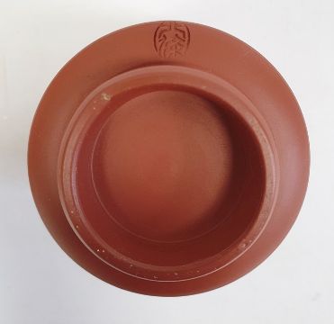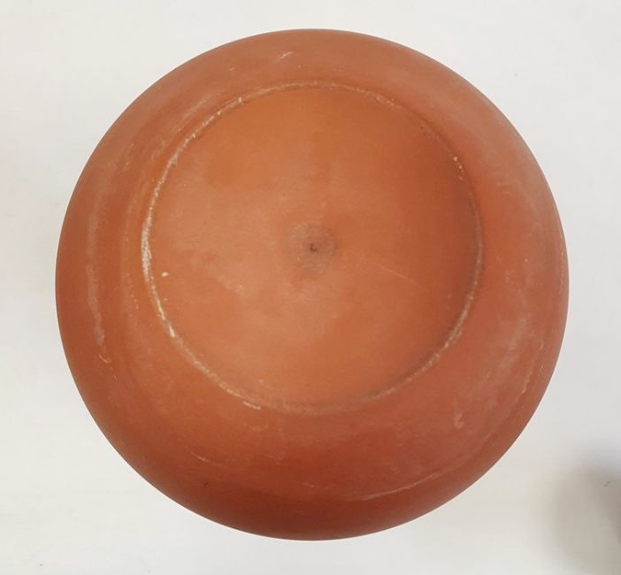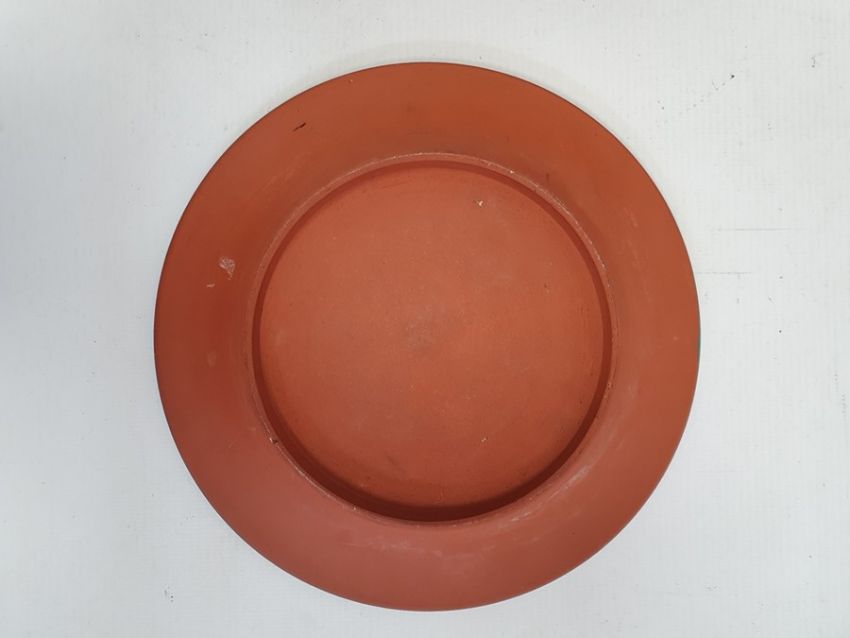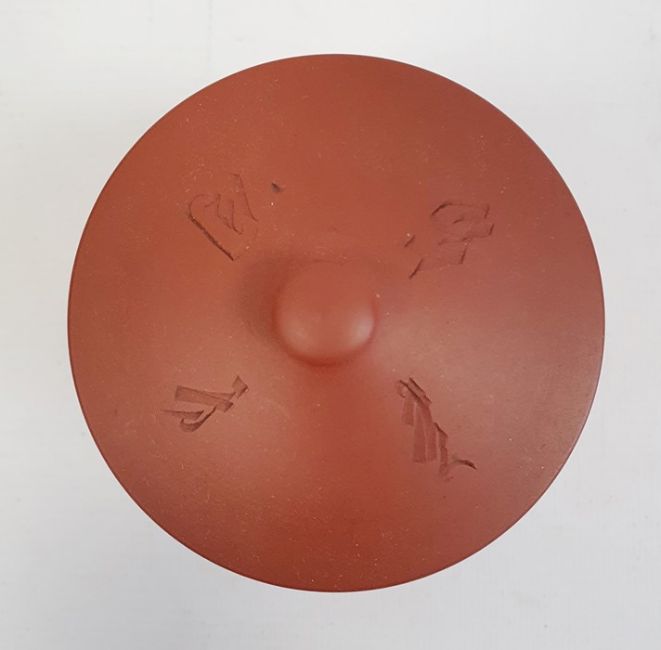 19th century terracotta bottle vase and cover decorated with enamels with convolvulus and the matching circular stand, 32cm high overall and oriental redware beaker vase and cover, character marks to the lid, 10cm high (3)
