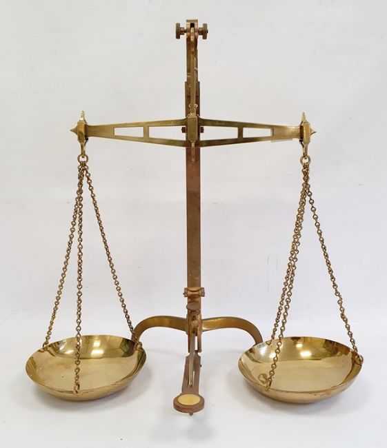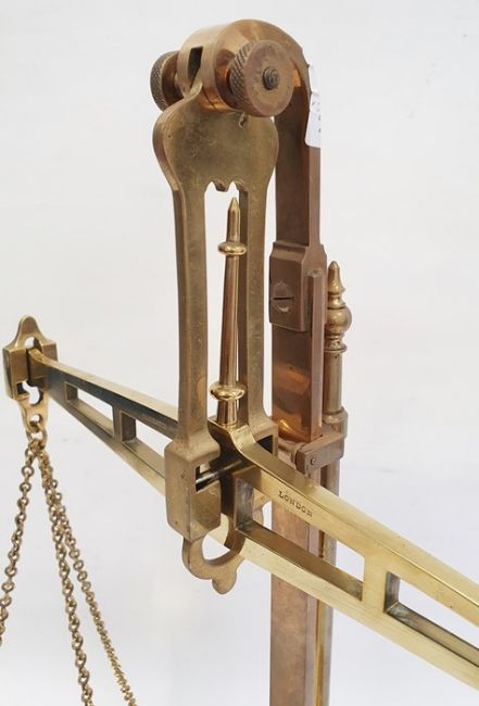 Set of Degrave & Co of London folding brass balance scales, 60cm high