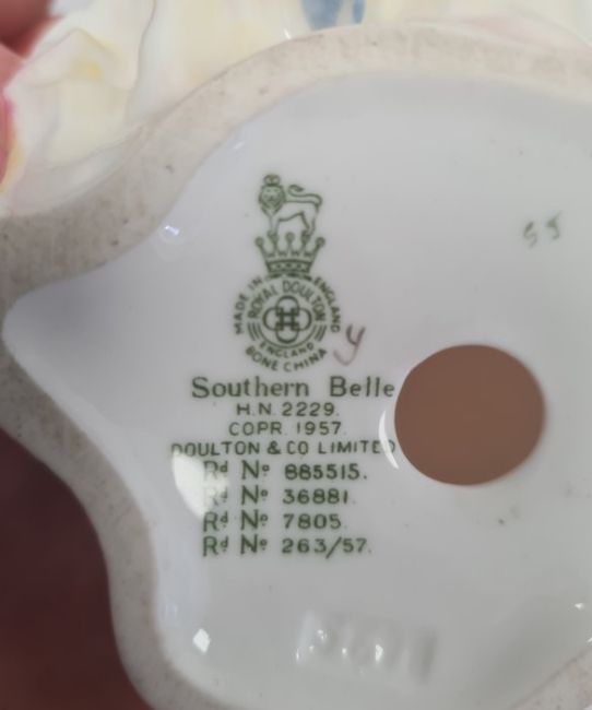 Capodimonte figures of shepherd and shepherdess, 19cm high, Royal Doulton figure 'Southern Belle' and another 'Sweet April' (4)