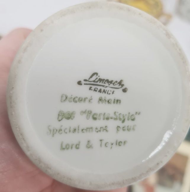 French Dehaux, Paris, porcelain bachelor's coffee pot with matching two-handled sucriere, yellow ground and floral decorated, Limoges porcelain table lighter, Delft model guitar (damaged) and sundry decorative ceramics (7)