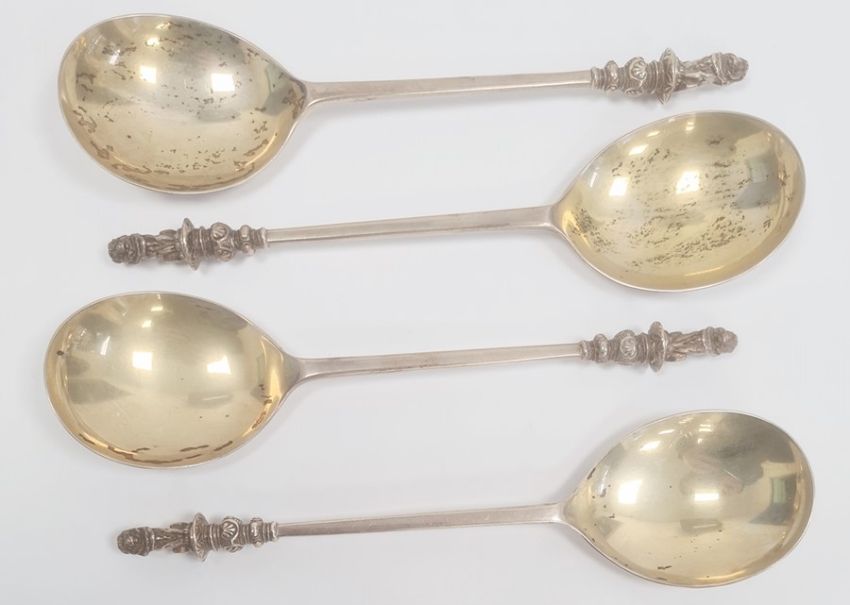 Set of four early 20th century Elkington apostle spoons with lion finials, Birmingham 1908, each spoon 2.3oz approx, each 20.5cm long (4)