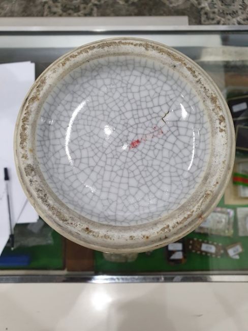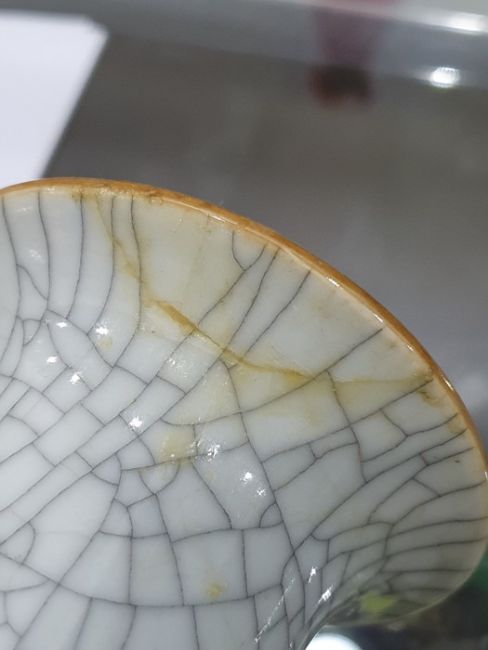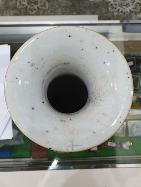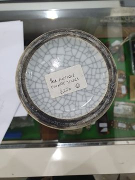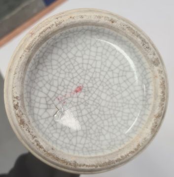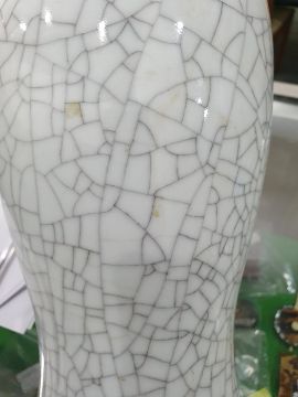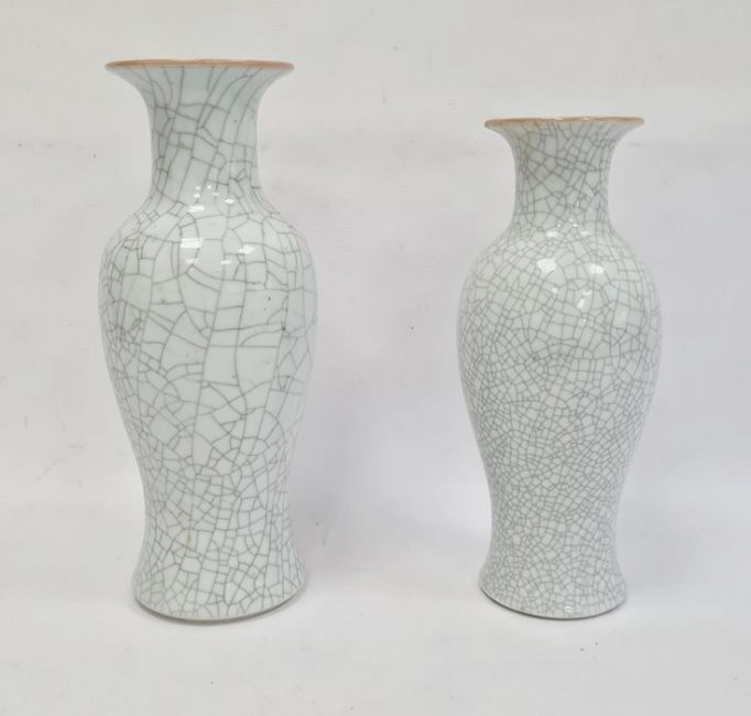 Two Chinese porcelain crackle glaze meiping vases, graduated, 35cm high and 31cm high (2) Condition ReportSmaller vase has an old repair to the rim, some surface marks and accretions.Larger vase has surface marks, staining and accretions.