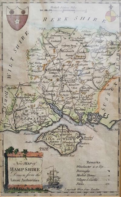 Coloured engravingNew map of Hampshire Drawn from the Latest Authorities, 21 x 14cm