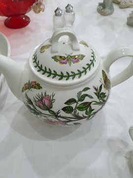 Two Portmeirion rectangular casserole dishes, teapot, circular dish, six coffee cups and saucers and other Portmeirion Condition ReportAll items appear in good condition, no chips or cracks. Some light surface scratches and accretions. General wear and tear commensurate with age and use, see photos.