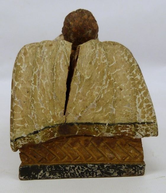 Carved wood and gesso figure of child on bed, worn polychrome finish, probably Italian, possibly 18th century Condition ReportHeight approx 12.5cmLength approx 21cmWidth approx 10cm