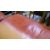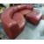 Modern red leather corner sofa and footstool (2) Condition ReportThe sofas are in fair condition, there is some rubbing to the leather. The two sofa units are missing their legs
