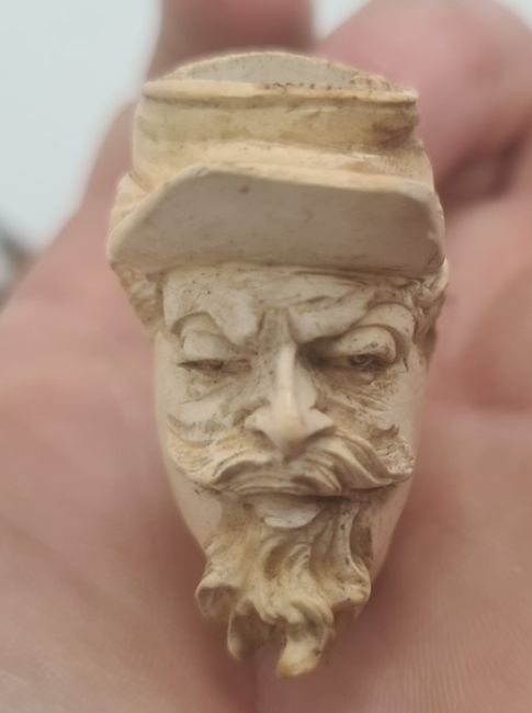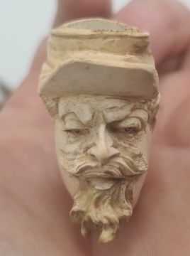 Carved wooden and amber pipe in the form of soldier wearing hat, inscribed 'CIV', possibly Australian, a meerschaum and amber pipe in the form of horses hoof, a small meerschaum and amber pipe carved with head of soldier, possibly American Civil War, another with clay bowl in the form of lady with hat, another pipe and half case