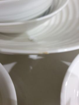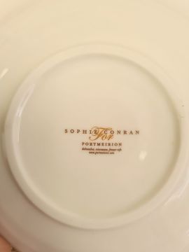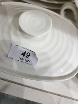 Portmeirion Sophie Conran designed part-dinner service, 20th century, printed marks, of reeded form, glazed in white comprising a shaped circular salad  bowl, an oval  butter dish and cover, a milk jug, one shaped circular bowl, seven teacups, eight saucers seven side plates, five soup plates, six dinner plates and a white glazed bowl similarCondition ReportRestoration or extensive use.One small chip to edge of salad bowl.Very minor and likely cleanable marking to one cup and butter dish cover.