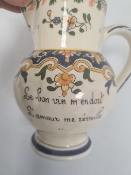Gubbio majolica lustre jug, 15cm high, a French (Montreuil-sur-Mer) pottery jug, a Quimper vase, a majolica bottle shaped vase and other items of Continental pottery, 20th century and various painted marks