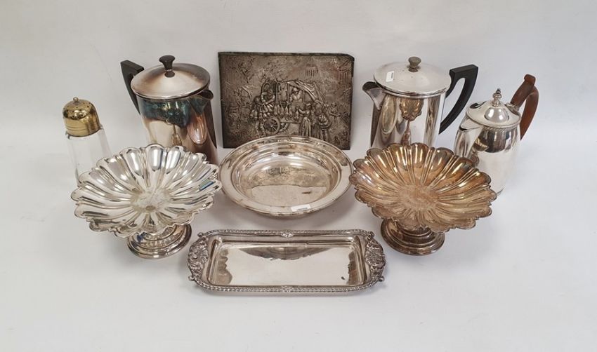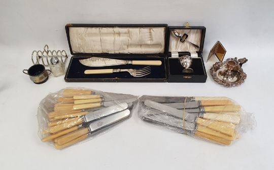 Quantity of silver plate including pair of comports, a photograph frame, bone handled knives, etc.