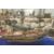 Painted wooden model of The Royal Yacht Caroline 1749, in glazed and stained wood table-top cabinet, 92.5cm wide x 81cm high approx