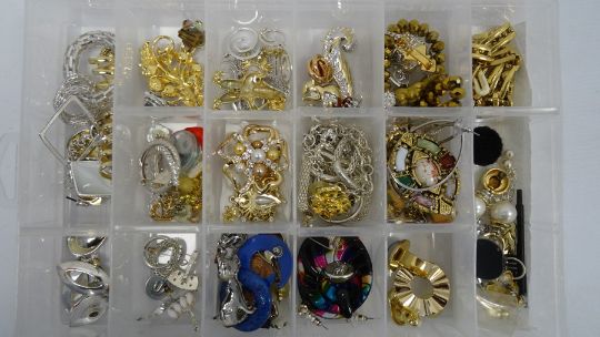 Quantity of costume jewellery to include brooches, earrings, rings, simulated pearl, diamante, etc