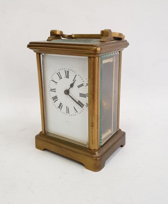 Brass carriage timepiece in plain case, 15cm high