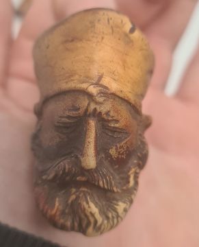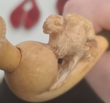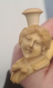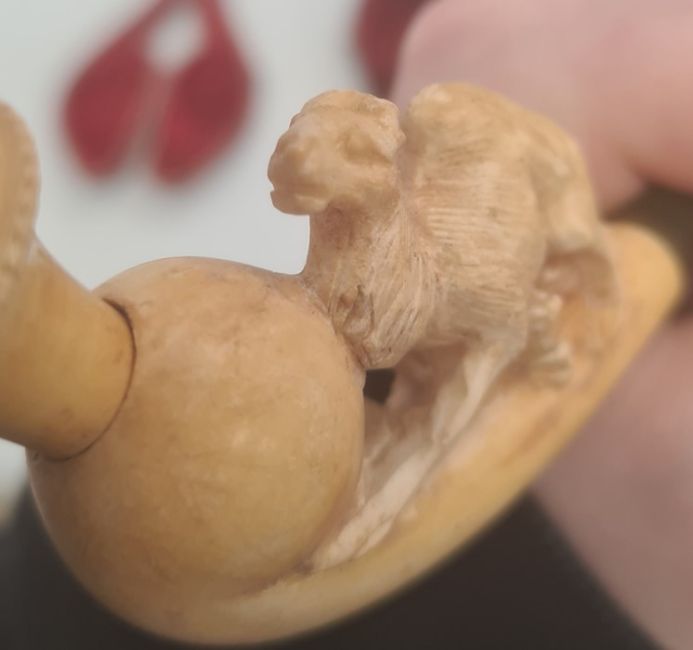 Four meerschaum and amber pipes decorated with Edwardian lady, camel, Middle Eastern gentleman and hand (damaged mouthpiece), all cased (4)