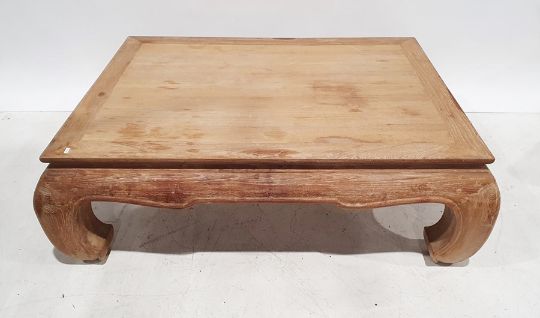 Oriental-style coffee table in limed-effect finish, the rectangular top on four carved supports, 91cm x 122cm approx