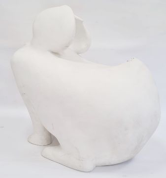 Modern large white painted composition model stylised rabbit, indistinctly signed M Brennan?, 53cm long x 46cm high approx