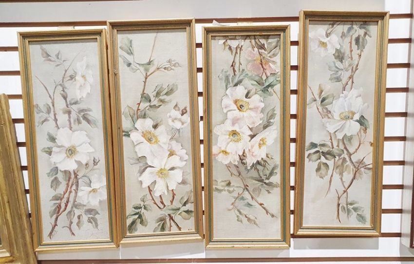 20th century schoolOil on boards, set of fourWhite rosesInitialled MOB41.5cm x 14cm (4)