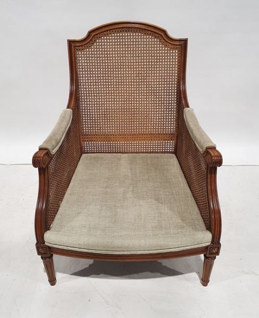 Modern bergere armchair, green upholstered seat and back, fluted front legs