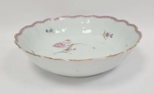 Chinese export bowl painted in the famille rose palette, Percy W L Adams provenance label, 26cm dia.
