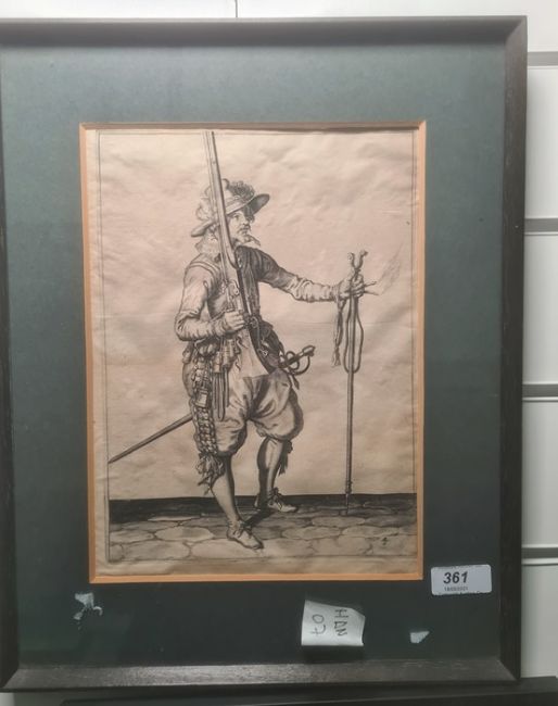 After Jacob de Gheyn (1565-1629)Copperplate engraving "The Exercise of Armes for Calivres, Muskettes and Pikes", Weinreb and Douwma Ltd label verso, 26cm x 18cm