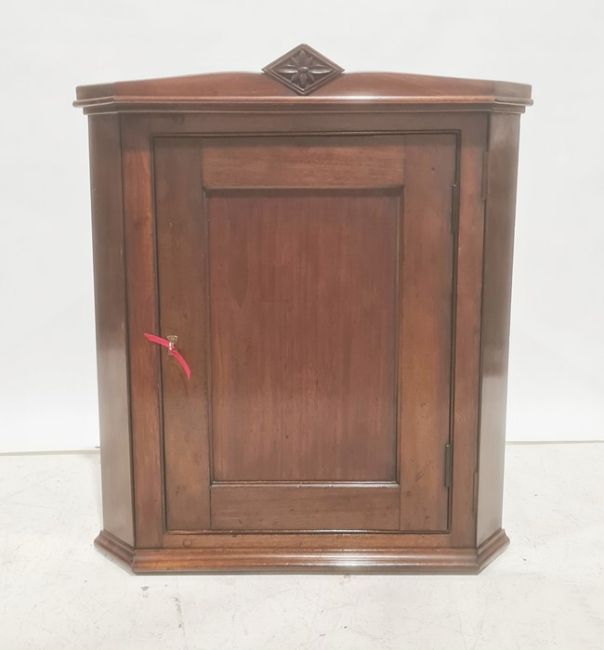 19th century mahogany wall-hanging corner cupboard, single door enclosing shelves, 89cm high
