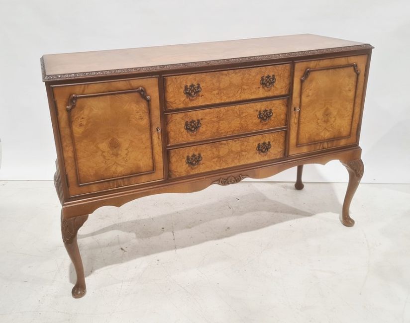 20th century walnut sideboard, the rectangular top with moulded and carved edge