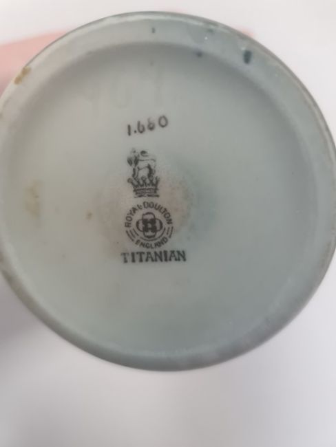 Royal Doulton Titanian ware tapering cylindrical vase, circa 1920, painted with a swan and a cygnet, by F.Henri, signed, in a lakeside landscape, printed black marks, 15cm high Condition ReportSome wear around the flared bottom portion and some scuffing on the base.Limited/no crazing.