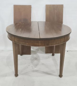 Mahogany D-end dining table with reeded edge and tapering square supports and with two leaves, total length approx, 187cm x 107cm wide