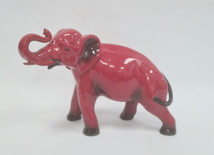Royal Doulton flambe model of an elephant, printed black marks, 13cm x 21.5cm approx Condition ReportNo sign of crazing. Some minor print imperfections.